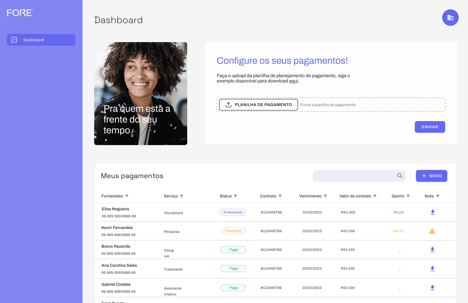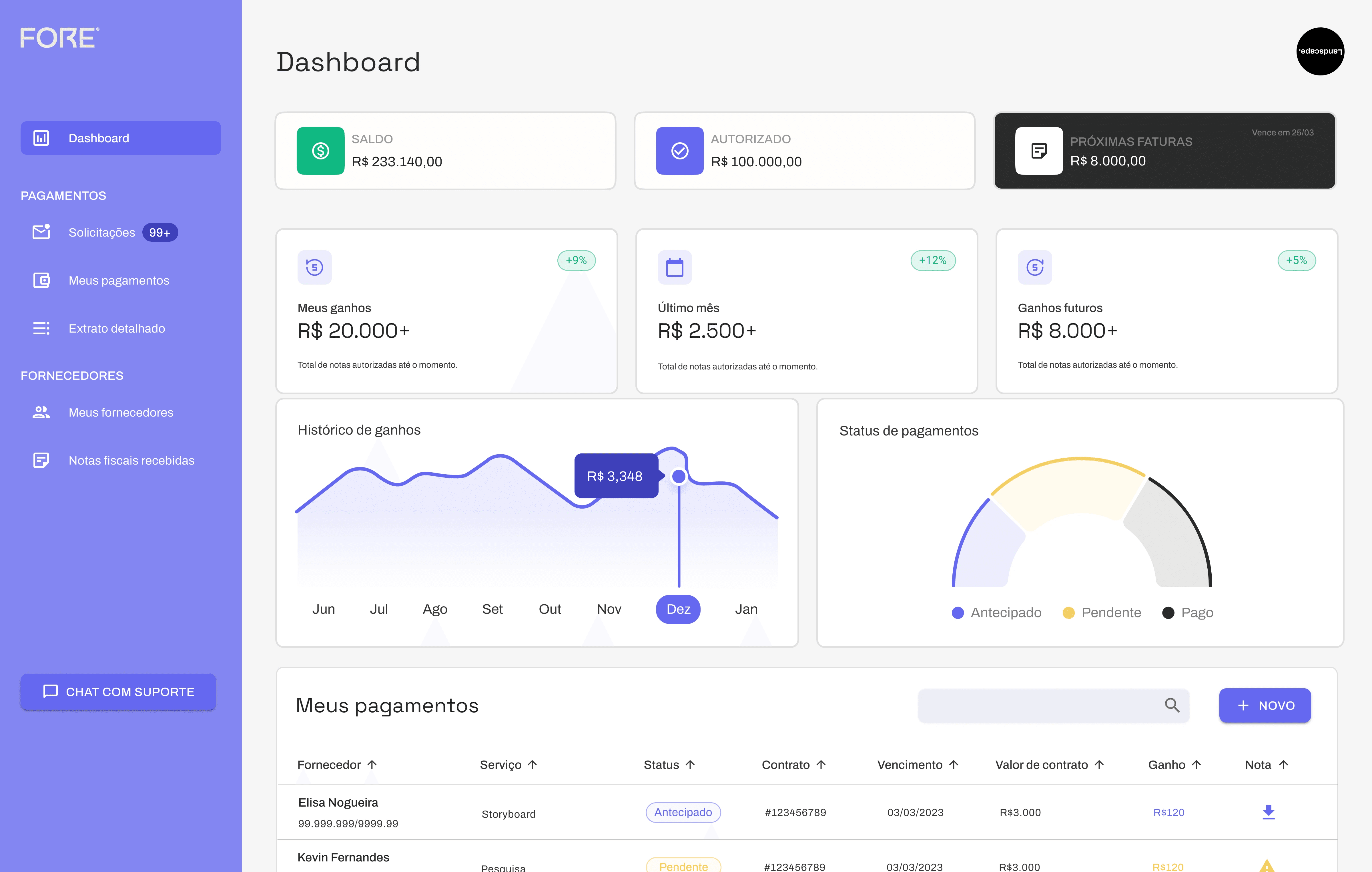 The FORE system was designed with focus on UX/UI and digital product structure. In partnership with HOX, the complete platform was developed by aligning design, technology, and functionality to deliver a financial product tailored to the audiovisual industry.
